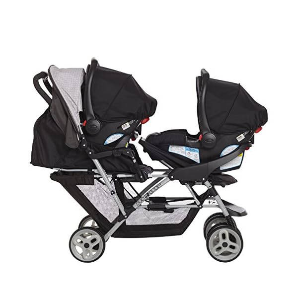 Accepts two Graco SnugRide infant car seats (stroller is not compatible with convertible, 3-in-1, or 4-in-1 car seats)