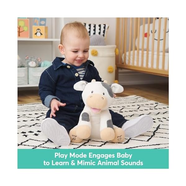 INTERACTIVE PLAY: Buttermilk features 2 ways to entertain: song mode, where it sings “Old MacDonald Had a Farm,” or play mode, with a fun game to teach baby animal sounds using mouth movements and wiggling ears. Press either hoof to sing or play!