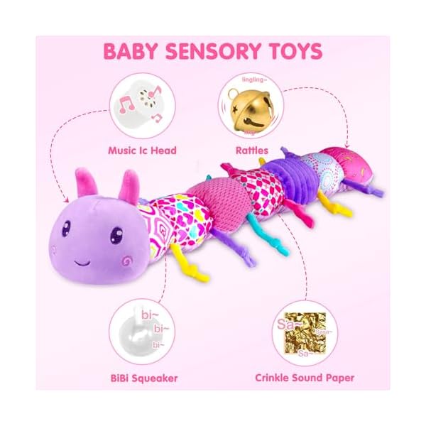Baby Toy 0-6 Months,Baby Musical Stuffed Animal Soft Toy with Multi-Sensory Crinkle, Rattle & Textures,Baby Girl Toy for 6-12 Months Birthday Gift(Caterpillar)
