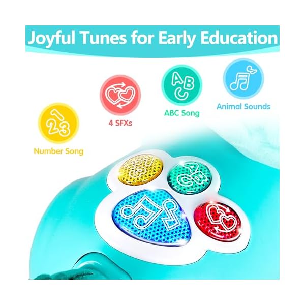 【Encourage baby to crawl and walk】Equipped with a directional button on its base, this toy can be adjusted to move straight or rotate. Activating the button will trigger flashing lights and fun sounds, while the head and tail wiggle from side to side to capture the baby’s attention. This movement aids in guiding your baby to crawl after it or learn to walk.