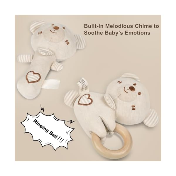 Stimulating Senses: Our baby rattles feature two adorable beige bear animals that produce gentle sounds, promoting visual and auditory development in your little one.