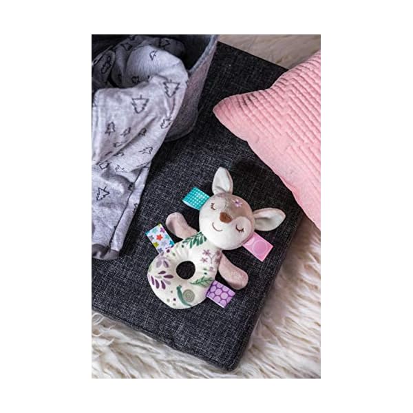 DEER BABY RATTLE: Soft ring rattle measures 6-inches; ideal size and shape for little hands, shake it baby to make some noise