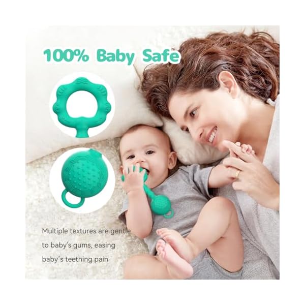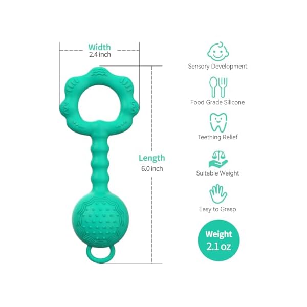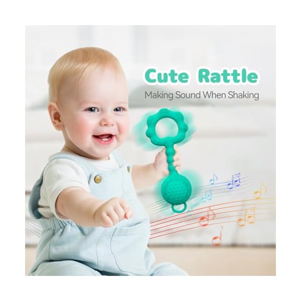 – Safe, Durable & Comfortable: Made of food-grade silicone, our rattle teethers are toxic-free as well as BPA-free. The smooth, polished edges ensure there is no burrs, and the lightweight and easy-to-hold design makes them perfect for little hands to grasp and for baby to chew. These teethers are anti-deformed and can prevent children from choking, creating a comfortable and worry-free experience for you and your baby.