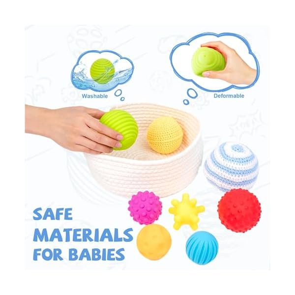 👶【Safe Materials for Babies】: The balls are made of safe materials that are non-toxic and free from harmful chemicals. The materials are soft, durable, and easy to clean, making them ideal for babies who love to explore and put things in their mouths. Parents can have peace of mind knowing that these balls are safe for their little ones to play with.