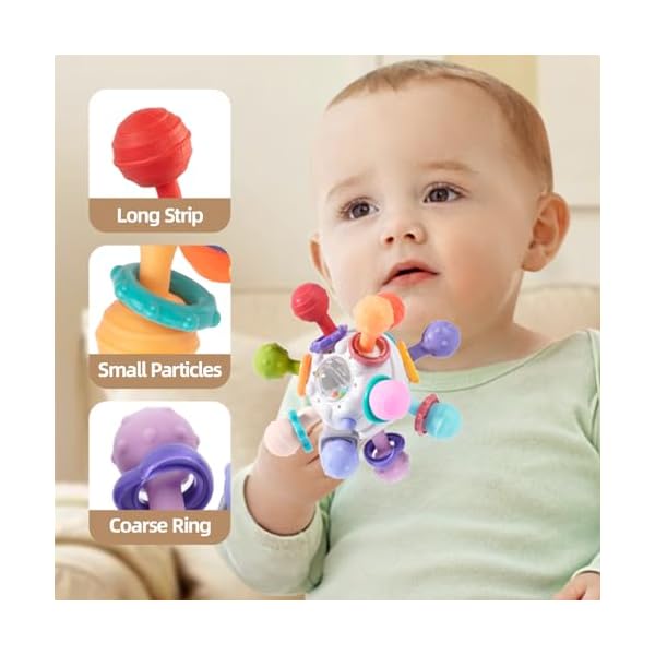 Multisensory Clutching Baby Toy – The atomic rattle & teether multi-sensory clutching rattle and teether encourages grasping and reaching which are important in gross motor skills development