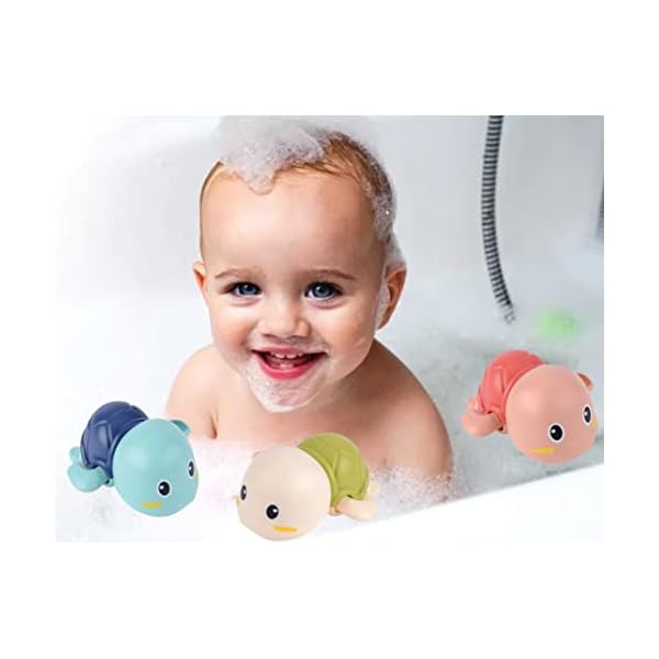 [Wind-up, clockwork Bath Toys]: The Bath Toy has a Clockwork and Wind-up Spinning gear. Turn the clockwork of the Turtle Clockwise, put it in the water and release the hand, they will start swimming. Children will follow the swim and enjoy the Bath time.
