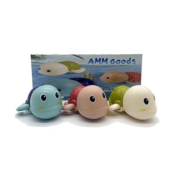AMM Goods Turtle Baby Bath Toys for Toddlers, Wind-up Bathtub toys for Boys/Girls/Kids, Funny Swimming pool Toys, Best Gift for the little one. AMM Goods Baby Bath Toys set has 3 Funny Turtle Toys (Blue, Pink, Green). It brings more fun to kids and makes the bath time interesting. Its bright color and shape attract the babies to bath, develop their hand-eye coordination, motor skills, knowledge of physical Buoyancy. How to play: Step 1: Hold the legs on both side of the Turtle so it doesn’t move. Step 2: Turn the clockwork of the Turtle clockwise. Step 3: Put the Turtle in the water then release the hand. It will start swimming. Warning: 1. This product should keep out of fire source. 2. Remove the plastic bag, label, and others before handing the bath toys to the children. 3. Please use it under adult supervision. Children must not throw it to each other. 4. Don’t use it if product is damaged or broken.