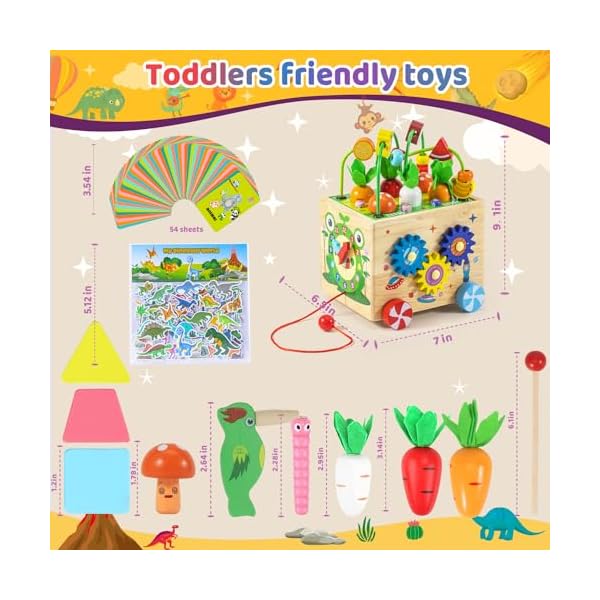 【Idea Gift for Toddler】The wooden activity cube Montessori toy is gift wrapped and comes with dinosaur bubble stickers and cartoon animal literacy cards. It is highly educational and fun, making it an excellent gift for 1-3 year old toddlers on birthdays, Easter, Christmas, Halloween and more.