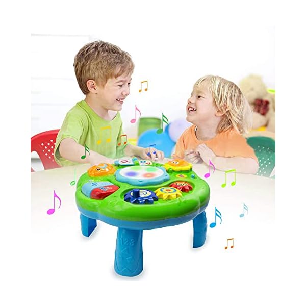 【3 IN 1 MUSICAL TOYS】 Baby can play the music learning toys on the floor when he’s sitting up. Later, add the legs, baby will enjoy standing up to play. Sturdy Legs are assembled or removable according to your needs. Remove the legs, the suitable size music table can be tied in a crib or car for your little kids playing. No extra space is required. Portable and easy for children to carry.