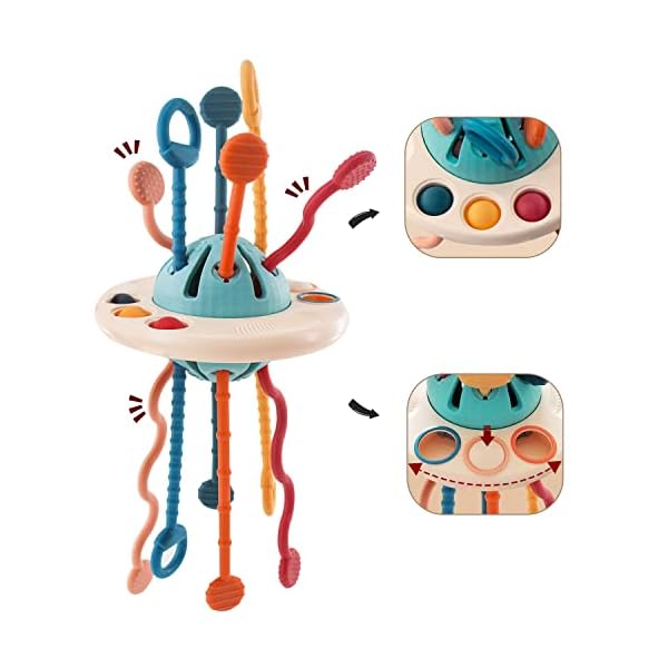🌌【100% Safe Material】This funny puller string interactive toy has passed CPSIA & ASTM F963 certification in the US and EN71 & CE certification in the EU.The multi-sensory activity toy made with food grade silicone and ABS,100% safe material, Non-toxic, BPA and phthalate free.Easy to clean (warm water or top rack of dishwasher).