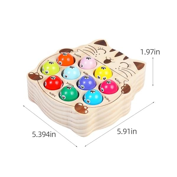 NATURAL MATERIAL: JAUNTY brand company is a company specializing in the production of wooden toddler toys. This Montessori kitten fishing toy is made of pure natural wood. The main body of the kitten is cut from a whole piece of natural wood. The pattern is laser stamped and does not contain any chemicals. The colors of the accessory fish are all painted with non-toxic water-based paint, which is non-toxic and odorless. This kitten fishing toddler toy has been tested by the American Toy Associat