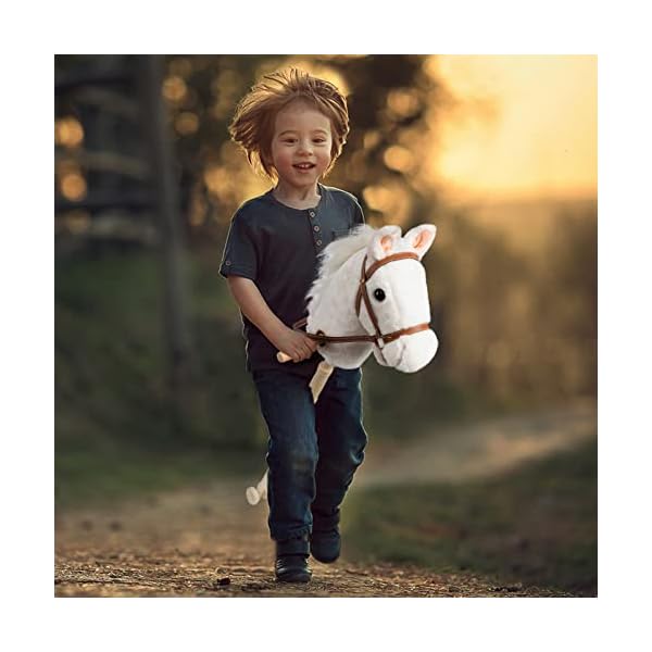 Hand crafted plush horse head and sturdy wooden stick to nurture baby’s practical ability and develop their balance ; A good helper for parent-child interaction
