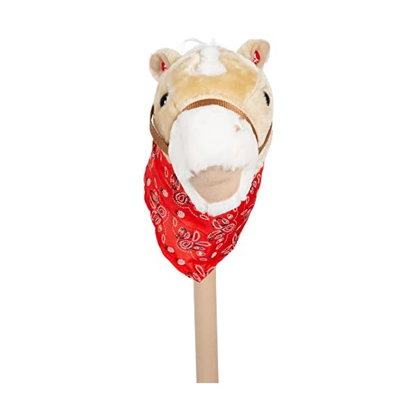 Cute plush horse head with a classic red scarf and a felt covered comfortable stick for children