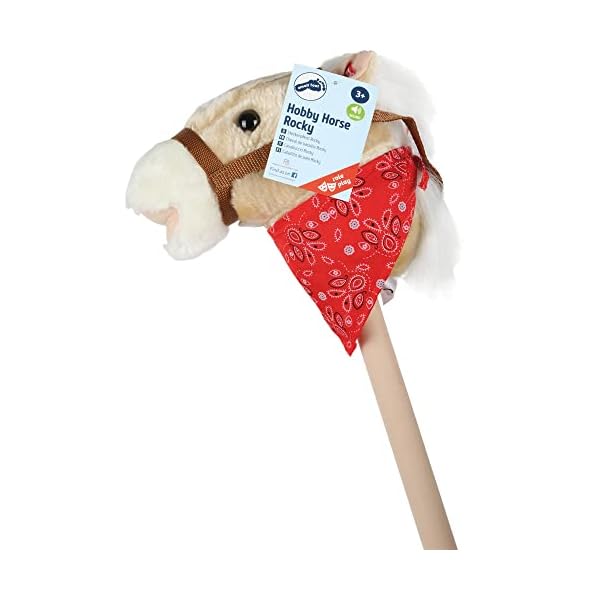 “Wooden Stick Horse by Small Foot – Classic Plush Hobby Horse Ride-On Toy – Animal Includes Realistic Sounds & Red Bandana – Develops Kids Imaginative Play, Coordination and Balance – Ages 3+ years This adorable horse named “”Rocky”” with a red bandana neck scarf takes the rider over hills and across western prairies. The hobby horse has a soft plush head and a stable stick for holding. The noble steed neighs and gallops when you press the buttons in the ears. Batteries are included so this horse is ready to play when opened. Rocky is the perfect first stick toy that will grow with children through the toddler years and beyond! The pony is the perfect size for little ones that are learning new skills like running, galloping and balancing. Did you know that role play helps boost brain development? It has been proven that imaginative play helps children with language skills, creativity, social interactions, and helps them process experiences better. Toddlers and older children alike will enjoy screen-free time playing with this toy, as it promotes hours of quality playtime no matter what the weather or temperature in your hometown is. Yee-haw, giddy up! Small Foot Wooden Toys are designed for the learning and playing needs of children. We offer a broad line of developmental, role playing, craft and educational toys for children ages ranging from 6+ months to 10 years of age. We source only the highest quality raw materials and regularly test all our products to ensure dependable craftmanship & product safety. Every toy created meets and exceeds ALL global quality toy standards and safety certifications. • TUV Certified – Our baby products meet the highest European safety guidelines. • ICTI Ethical Toy Program certified – We’re committed to fair treatment of resources, employees, and processes • FCS Certified – Products with the FSC® seal stand for particularly ecological and social responsibility”