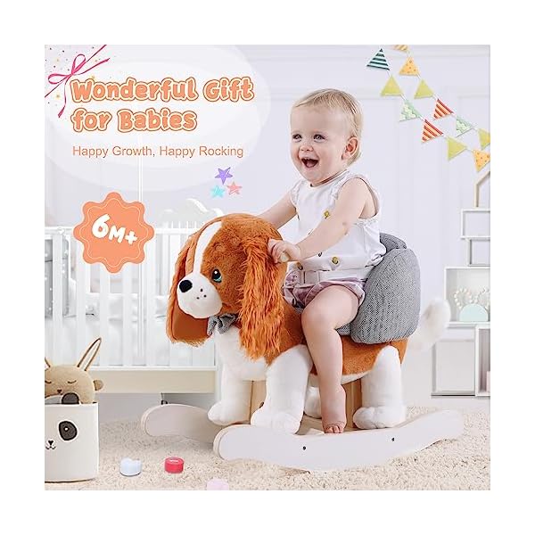CERTIFIED SAFE MATERIALS – All materials have passed American Toy Standards certification and have even higher levels than CPC certification, ASTM test reports and Europe’s EN71 testing. All these make it a safe and sturdy King Dog rocking horse for infants 6M-3Y.