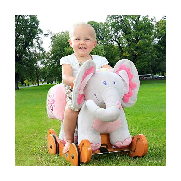 🎶 Sound Paper 🎶 – There are some amazing sound hiding in the Ear or somewhere of this cute elephant, make sound when squeezed, waiting for baby to find out. Parents can use this function to teach baby “nose”,”ear” etc. It is much easier to remember when learning together with sounds; For early age babies, exploring new thing by themselves helps develop their independent play and curiosity. It can be well used as cute baby rocker, baby girl rocker or kids riding toy.