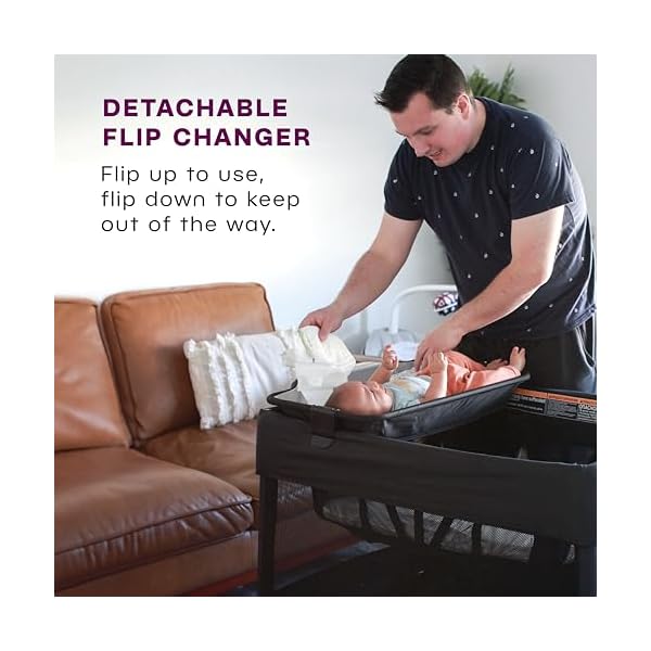 With its “one push open, one pull close” Functionality, This thoughtfully designed combination playard, bassinet, and flip changer will give you the ultimate in flexibility when it comes to baby care. The 4moms breeze plus is an all-in-one care station that adapts to your baby’s needs throughout the day and over the first few years. It gracefully opens and closes with a single motion. And unlike other Playards, it fulfills its promise of true one-handed set-up! Because the breeze plus consolidates much of your baby’s essential care into one portable place, it will become the one piece of baby gear you can’t live without. The bassinet offers a comfortable spot where baby can rest. Use the convenient flip changer for quick diapering and clothing changes. As your baby grows and is on the move, simply take out the bassinet to provide a safe space for relaxing and playing. The bassinet can be enjoyed from birth to 18 pounds, The flip changer up to 25 pounds, and the durable playard until 30 pounds. When not in use, conveniently tuck it all away in the included travel bag.