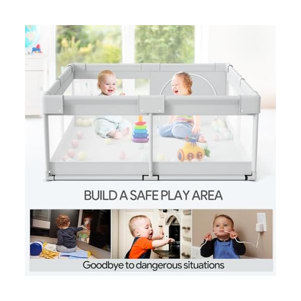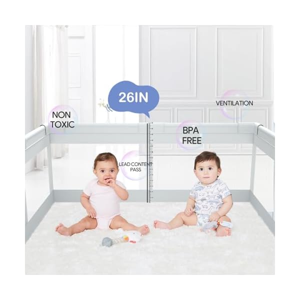 ⭐The 47x47inch playpen can accommodate 2 babies playing at the same time, the small playpen is easy to move and can be placed anywhere, away from dangerous areas, it can also be used as a storage area for baby’s toys, perfect for apartments