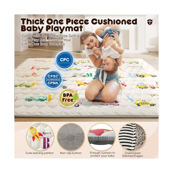 【0.4-Inch Double-Side Pattern & Foldable Playmat】The playmat of playpen features a high elasticity XPE soft mat that provides perfect cushioning for any falls the baby may experience. It is designed to fit snugly within the playpen’s dimensions. The playmat can also mat: This playpen come with a 47x 47 inch foldable play mat. The play mat sticks to the floor perfectly, a baby crawling or learning to walk will not slip. The mat is easy to fold up and cleans easily with a damp cloth.