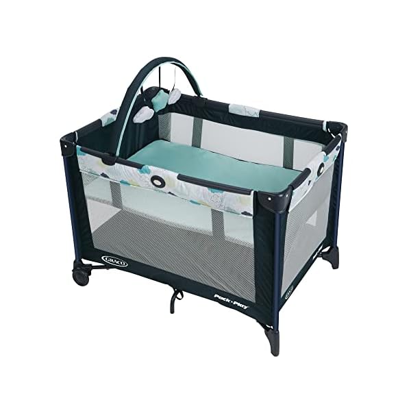You want your little one to be comfortable no matter where you go and Graco wants to make that easier for you. With the Graco Pack ‘n Play Playard On The Go, in Stratus, you have a removable full size bassinet that provides the perfect spot for baby to catch a nap, as well as automatic folding feet and wheels which make it perfect for travel. The signature Graco push-button fold allows you to break the baby play yard down quickly and with no hassle. At home or away, baby will be kept comfy and cozy. Care and Maintenance: Clean with household soap and warm water/drip dry. No bleach. Machine wash carry bag in lukewarm water/drip dry. If Playard gets sandy, carefully remove sand from all surfaces before packing into bag as sand can damage top rail lock. Recommended Use: For use by children unable to climb out, less than 35″ tall. Bassinet for babies under 15 lbs and unable to push up on hands and knees. FALL HAZARD: To help prevent falls, do not use this product when the infant begins to push up on hands and knees or weighs over 15 lbs(6.8 kilogram), whichever comes first. The folded height is 29 inches and the folded width is 10.5 inches.