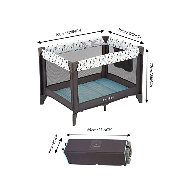 【Foldable & Easy installation】The portable baby playpen is composed of strong and lightweight materials and thick fabrics. It can be quickly folded and assembled without tools. The folding size is 27L*8W inches.