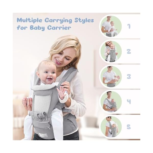 ✨6-In-1 Baby Carrier: The baby carrier with hip seat is adjustable and detachable. There are 6 carrying methods in 3 combinations, which conforms to the baby’s spinal development rules. Suitable for babies 3-36 months, 13-44 lbs. Parents can use different front, side or back carrying methods according to the growth of their children.