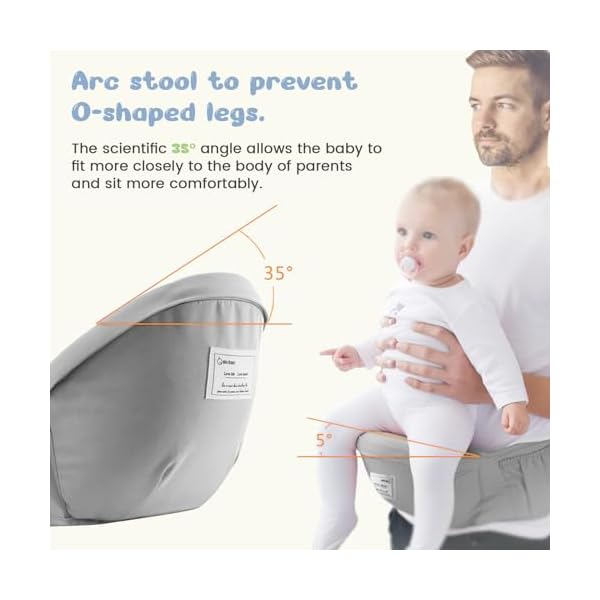 ✨Ergonomic Hip Seat: The baby carrier with hip seat adopts “M” shaped support to make the baby’s legs naturally vertical, effectively reducing the stress on the hip joint and preventing hip joint dislocation. Protect the normal development of your baby’s bones. The 35° inclined lumbar stool and 30mm thick hip cushion design can better fit the parents’ waist, effectively share the weight and reduce bumps and shaking when parents walk.