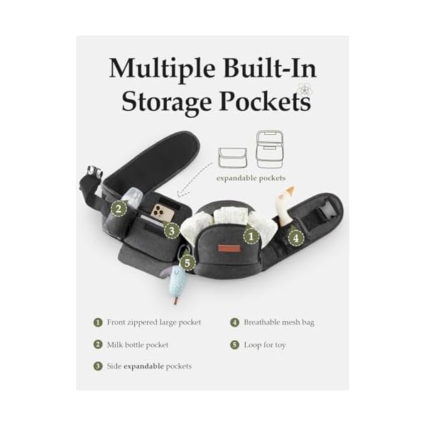 Roomy Storage – Our hip baby carrier with seat is designed with lots of storage capacity, roomy and expandable, capable of holding various baby essensials, ensuring everything you need is right at your fingertips