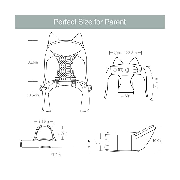 【Ergonominc Design】- This toddler carrier fits 25-60 lbs is designed perfectly to meet baby’s need and baby’s security. 30° inclined stool surface supports baby in an ergonomic natural “M” position, which gives baby the best safety and comfort.