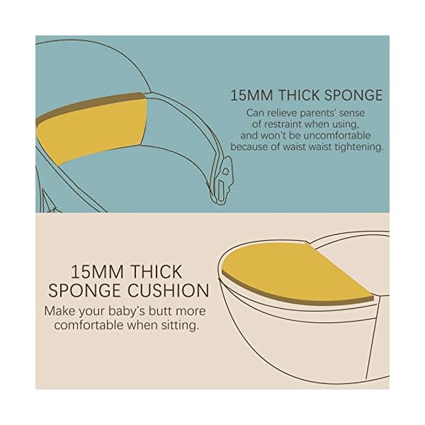 【Ergonomic Comfortability】The hip seat allows for even distribution of baby’s weight, supports baby in an ergonomic natural “M” in all baby carries positions, relieves tightness from the crotch area. Thick sponge padded shoulder strap, and extra-wide waist belt, both of these are adjustable to prevent spinal injuries caused by unreasonable load-bearing for a long time.