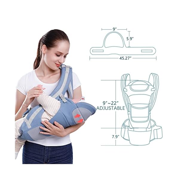 【Soft & Breathable】The baby carrier with hip seat is made of high quality pure cotton and air mesh, comfortable, skin-friendly, and breathable, It can effectively protect the baby’s delicate skin from scratch, and is suitable for all seasons.
