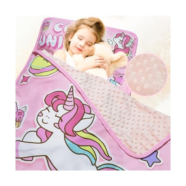 【Perfect Size】- Designed for children aged 3 to 7, the toddler nap mat offers a warm and cozy sleeping experience. With dimensions of 52″ x 21″ for the mat and 41″ x 31.5″ for the included blanket, your child will have ample coverage for a peaceful sleep.