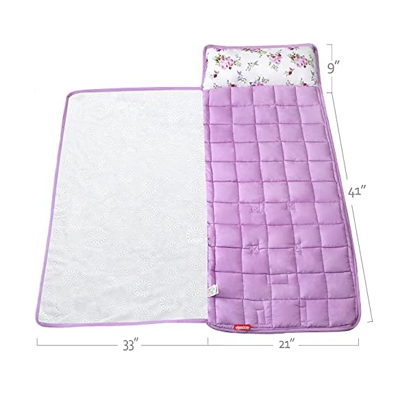 Size: Mat finished size (including pillow): 21″ x 50″ , the blanket finished size: 41″ x 33″. It is a perfect size designed for children ages 2 plus. Whether it’s for Preschool, Kindergarten or Daycare, this nap mat will become the perfect companion for your children.