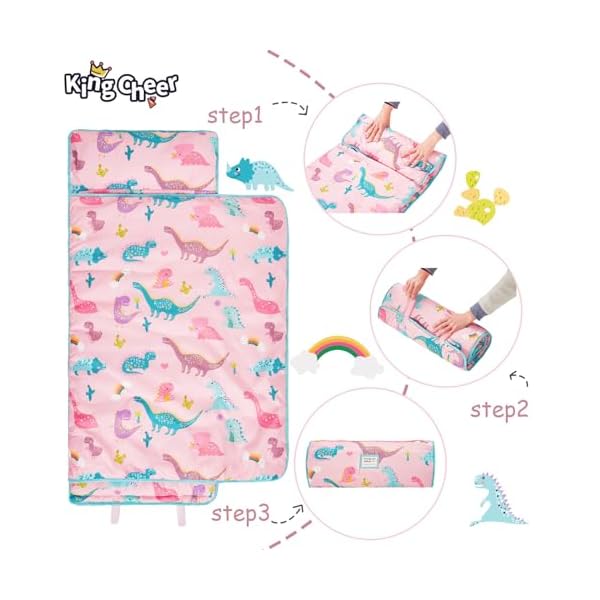 Three-in-one design:Three-in-one design with a sleeping mat, blanket and removable pillow. Our toddler nap mat can be Rolled up easily and convenient to carry with long handle design. This nap mat is Perfect for preschool, daycare, kindergarten and sleepovers.