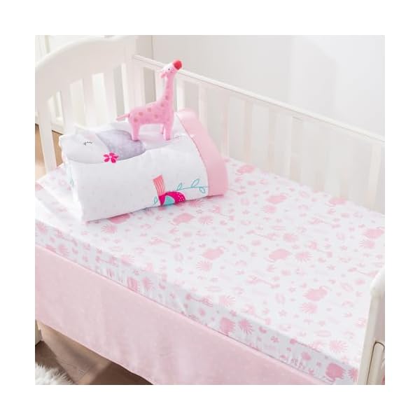 Soft Crib Sheet: The fitted crib sheet has the perfect universal fit, designed 28 in x 52 in with 8 inch deep pockets for a standard crib mattress with snug fitting all around elastic and is crafted from the same soft and stylish cartoon print. 4 fitted split corners make changing and washing more easier. Cozy enough for daily baby care.