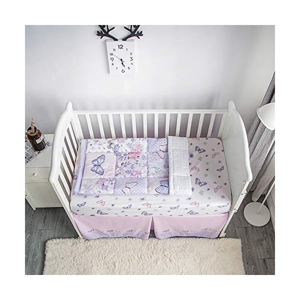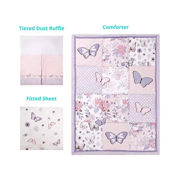 La Premura Crib Bedding Set for Girls – Lilac Butterfly 3 Piece Standard Size Crib Bedding Sets for Baby Girl, Pastel Pink and Purple