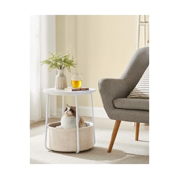 [Fits Small Spaces] The 45 x 50 cm (Dia. x H) end table with 39.6 x 18.2 cm (Dia. x H) basket fits small spaces. As a side table in the living room or as a bedside table in the bedroom, it’s not bulky but offers plenty of storage space for your items