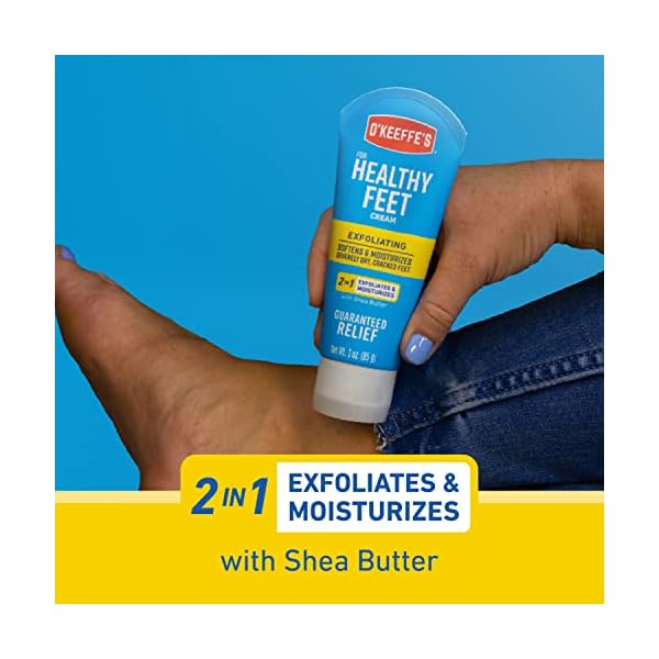O’Keeffe’s for Healthy Feet Exfoliating Foot Cream is an exfoliating cream that moisturizes, softens and repairs extremely dry, cracked feet. Guaranteed relief or your money back.