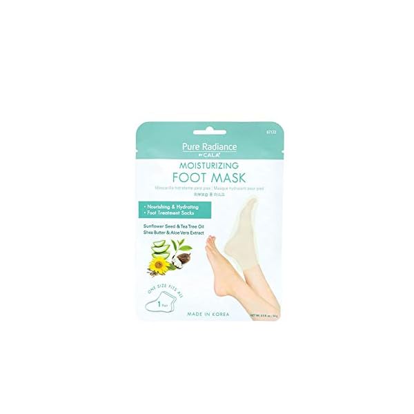Cala Pure radiance moisturizing Foot mask socks comes with nourishing & Hydrating properties. Insert feet inside feet masks. Leave on for 20-30 minutes. Massage any excess product onto the skin for long lasting hydration. These foot treatment socks are made up of Sunflower seed, tea tree oil, shea butter & Aloe Vera extract. One size fits all.