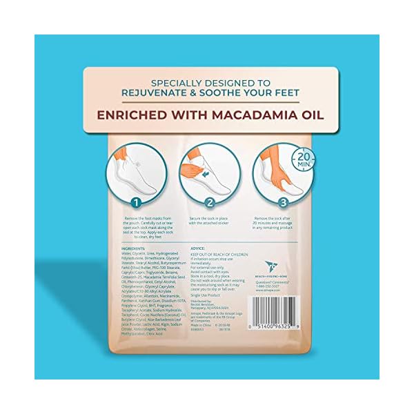 The Amopé PediMask 20-Minute Foot Mask – Time to Get Nuts with Macadamia Nut Oil is a great finishing touch to your foot care routine! These masks deliver long lasting hydration and moisturization to improve the appearance of your feet in just one use.