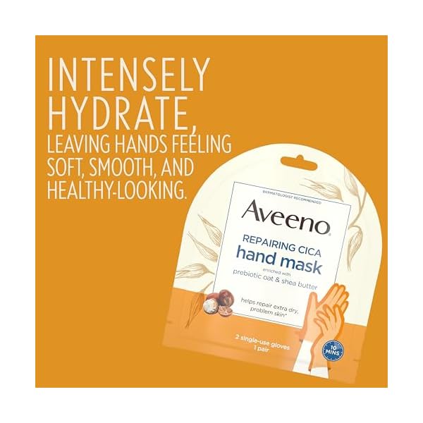 Restore essential moisture to extra dry skin with Aveeno Repairing CICA Hand Mask. These easy to use, non-drip hand gloves are the latest addition to the Aveeno Skin Relief collection