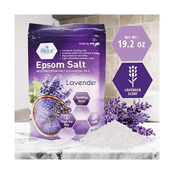 MED PRIDE Epsom Bath Salts 19.2oz, Lavender Essential Oil- Relaxing Foot Bath Salts for Soothing, Muscle Recovery & Relaxation – Soaking Salts