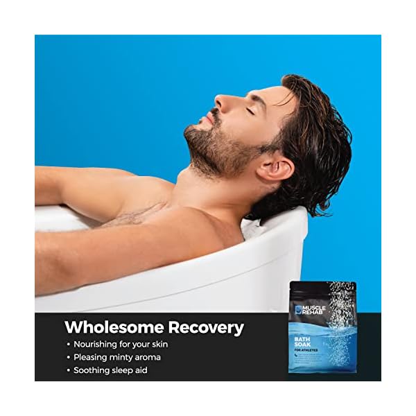 NATURAL MAGNESIUM BATH SOAK: Dive into the healing power of Muscle Rehab magnesium Epsom salt, a natural bath soak enriched with magnesium to help alleviate muscle tension and promote relaxation.