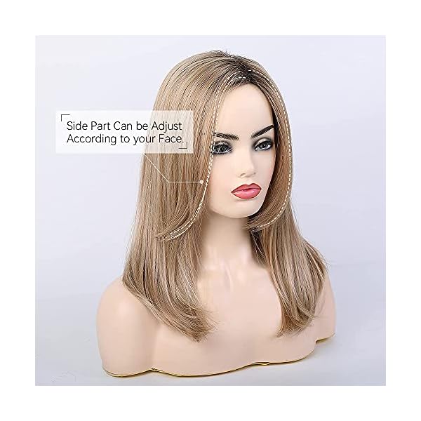 🍍Beauty Style–We have do many test,this side part medium length hair wig suit for different kind of face,shoulder length ombre blonde with dark root and fluffy hair make the hair looks like your own real hair.Thick soft hair for you.