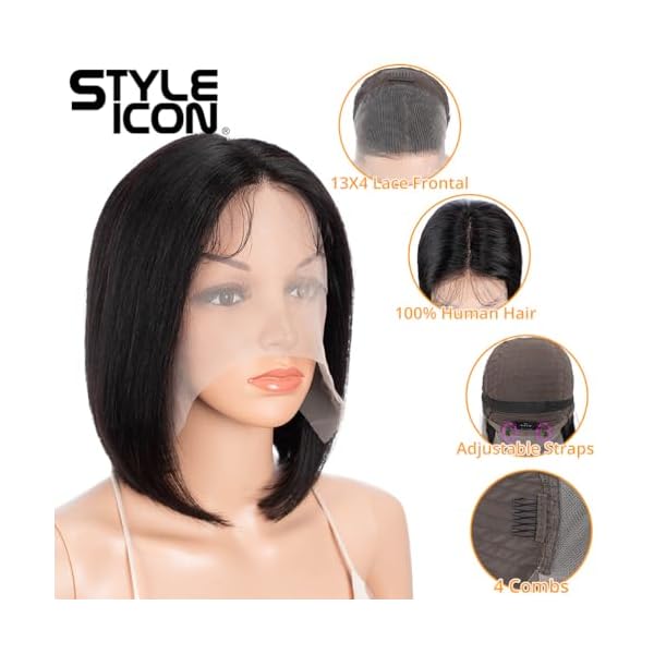 Style Icon 13 x 4 BOB Lace Frontal Wigs 10″ Human Hair Free Part 3D Lace Frontal Wigs for Women 100% Unprocessed Human Hair Wigs with Baby Hair 150% Density (BOB 10 INCHES, NATURAL)