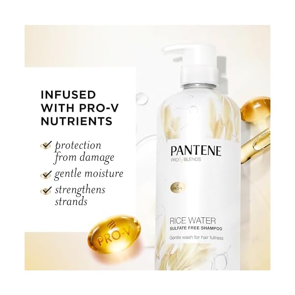 Seeking a nutrient-infused, sulfate-free shampoo for thinning hair? Pantene Pro-V Blends Rice Water Shampoo is a sulfate-free gentle wash crafted with a blend of potent rice water, Vitamin B5 and antioxidants to reduce hair loss and thinning due to breakage, protecting your hair’s natural growth. This strengthening formula provides nutrient-rich sulfate free bond protection, to keep hair looking volumized and full with every wash. Every time you step into the shower, enjoy the protective cleanse of this sulfate-free shampoo. The Pantene Pro-V Blends Rice Water Collection has been developed to bring out the best of your hair, with nutrient-rich ingredients free from sulfates, silicones, parabens, dyes, and mineral oil. HOW TO USE Just massage into wet hair, lather, and rinse for gently cleansed, voluminous, full hair. For best results, follow with Pantene Pro-V Blends Rice Water Conditioner to help hair grow strong and long. We strive to bring you innovative formulas using proven ingredients, so that every product we make helps you face the world with confidence. Transform the hair you have to the hair you want for more great hair days.