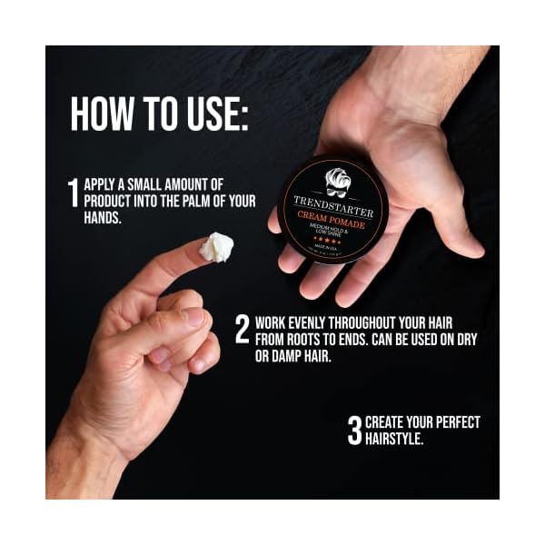 PREMIUM INGREDIENTS – TRENDSTARTER uses the best quality ingredients to keep your hair healthy and styled. TRENDSTARTER’s Cream Pomade contains many nutrients, including Panthenol and Vegetable Protein. Our proprietary nourishing formula strengthens, conditions, moisturizes, and improves hair of all types