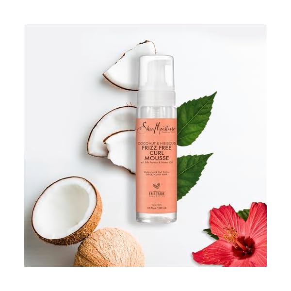 SheaMoisture Coconut & Hibiscus Frizz-Free Curl Mousse, blended with Fair Trade Shea Butter, helps make your curly hair beautiful and bouncy