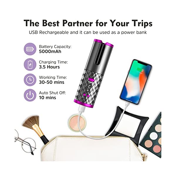❤AUTOMATIC CURLING IRON: The latest cordless curling iron, say goodbye to the messy and tangled cable design. Without cable restraints, you can curl your hair anywhere.The cordless auto curler uses latest intelligent induction motor for superior performance and well defined curls.