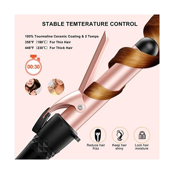 💐PTC& TOURMALINE CERAMIC: MAXT Hair curling iron adopts heating PTC technology, the pottery coating emits ions that interact with your hair to reduce frizz and maximize shine. You don’t have to worry about the hair damage, just enjoy your DIY salon fun.